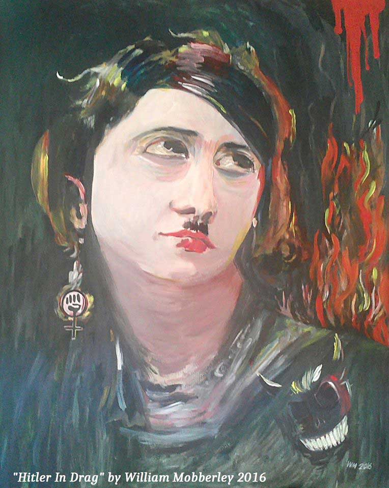 This painting wasn’t going too well and I was becoming increasingly frustrated with it so one day, I thought: “Oh stuff it. I’ll turn her into Hitler.”