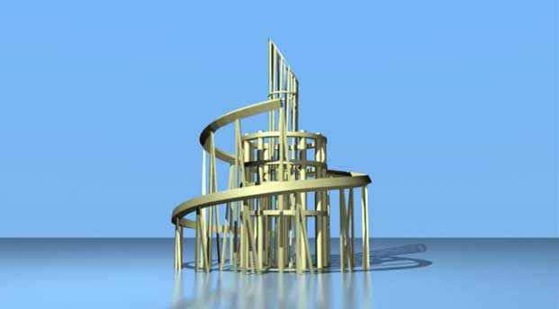 Three CG Towers inspired by the famous, and totally barmy, Communist project which never got built, designed by Tatlin. It was supposed to be the Soviet answer to the Eiffel Tower and was totally impractical and prohibitively expensive.