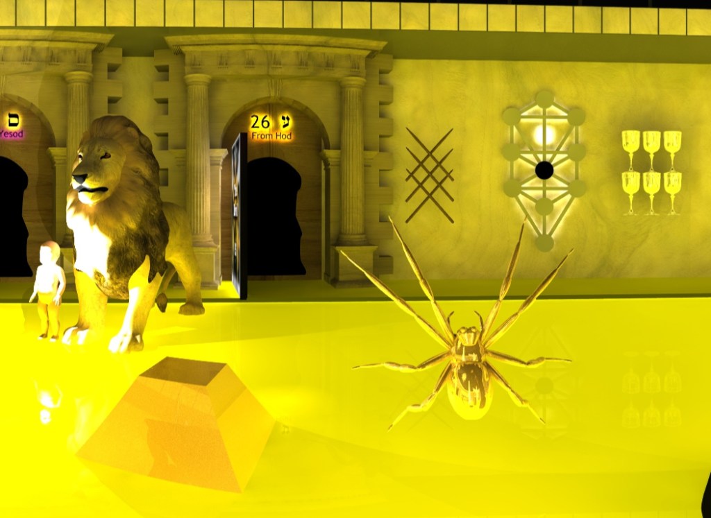The temple related to the Sephirah of Malkuth on the Mystical Qabala’s Tree of Life is rendered as a Virtual Reality Environment.